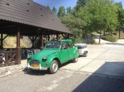 Ook de tweede ochtend in Hongarije zijn we al vroeg uit de veren. Ruud kiest voor een provisorisch bed in de buitenlucht op 4 klapstoelen. Niet ideaal, maar wel wat frisser. Ook Paul laat de hele tent open, wat Krista niet wil, dus die kruipt op Ruud zijn slaapplaats. Om 6 uur in de ochtend is Liske wakker en gaat aan de slag, Ruud gaat nog heel even op een luchtbed liggen, maar 7 uur is het tijd voor de afwas en een start maken met het inpakken. Om iets over 8 halen we de 2cv weer op bij de garage. Met alle extra karweitjes en de hitte duurt het toch tot tegen elf uur voordat we wegrijden en zijn we allemaal compleet bezweet en stoffig. We gaan verkoeling opzoeken in Slowakije. We zijn net op weg als we op een 3-baans snelweg onze campingburen over de derde rijbaan langs zien snellen en binnen 1 minuut zien we op onze rechterrijstrook dezelfde Nederlanders vol in de remmen gaan en tot stilstand komen op de rechterbaan, een vluchtstrook ontbreekt. De snelweg is bergop en we hebben te weinig snelheid om erlangs te kunnen. Ruud rijdt de 2cv in de berm naast de campingburen en dan blijkt de Hongaarse auto voor hen pech te hebben en het niet meer te doen en ondertussen zien we al het razende verkeer op ons afkomen. Het kost wat moeite om de Hongaren ervan te overtuigen dat de auto in de berm beter staat. Uiteindelijk lukt het en duwen we de auto van de snelweg af de berm in. Het is af en toe zeer eng, want soms gaat het maar net goed als het verkeer nog net Nederlandse auto kan ontwijken. De Hongaarse mensen bedanken ons hartelijk en staan in ieder geval iets veiliger in de berm, maar comfortabel is anders.