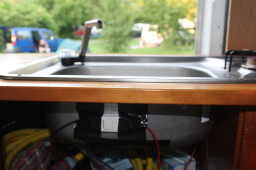 Tot slot nog twee dit-verzin-je-nietjes: Ruud heeft internet geraadpleegd over het knipperende lampje: 7 seconden tegelijk de rem en het gaspedaal intrappen moet helpen. En het is zo. Het lampje is uit. We gaan in de komende dagen kijken of het uit blijft. De andere betreft onze kraan in de camper. Het water deed het in Noord-Holland (reisje eind april) niet meer, dus dat moest gefikst. Nieuw pompje gekocht in Heinenoord, maar die deed het ook niet. Daarom twee nieuwe pompjes besteld via internet en terug met het pompje naar Heineoord, In de winkel doet het pompje het prima…. Hoe kan dat nou. Ergens in huis een kleiner pompje opgeduikeld en die werkte op de kraan, alleen die kreeg het water niet omhoog gepompt. De kraan doet het dus ook. Na veel testen en proberen waar het probleem in zat, bleek de toevoer van de pomp naar de kraan niet goed te werken. Hoe los je dat op: door er een schakelaar (van een lamp) tussen te zetten. Als je de schakelaar aan zet, komt er water uit de kraan en als je de schakelaar uit zet, stopt het water. Enig nadeel: je kunt de kraan niet harder of zachter zetten. De kraan is aan of uit, maar het werkt subliem. We kunnen gewoon water tappen in de camper.