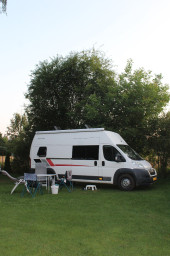 We zijn vandaag toch nog verder Tsjechië ingetrokken. De camping die we op het oog hebben doet niet aan reserveringen in juli en augustus, dus we gaan maar kijken of er plek voor ons is. De camping is volgens de website prima voor mensen die rust en stilte zoeken, waardoor we ervan uitgaan dat er wel een plekje is als we bijtijds arriveren. Volgens de navigatie zijn we er rond 13.30 uur, maar dat wordt uiteraard later als we onderweg wat boodschappen gaan doen en dan bedenken dat het wel erg laat wordt voor de lunch als we na de boodschappenstop in één keer naar de camping gaan. We stoppen dus nogmaals langs de snelweg en maken broodjes gezet. Als Ruud nog even wat te drinken maakt voordat we verder rijden, wordt hij aangesproken door Mark en Max of ze mogen meerijden richting Brno. Vooruit dan maar. Twee Hollandse jongens uit Amersfoort en Sommelsdijk (met een tante in Numansdorp die al rijdend kijken of ze wellicht ook een nachtje kunnen slapen op de camping waar we heen onderweg zijn. Je verzint het niet, maar na slechts enkele minuten rijden gaat er weer eens een lampje (knipperend) branden op het dashboard. Dit keer van de olie, maar de camper is een maand voor vertrek naar de garage geweest voor de keuring en een beurt. Wat nu weer…. We stoppen dus bij het eerstvolgende benzinestation en Ruud gaat de garage bellen. Mark en Max besluiten toch dat ze hier alweer uitstappen om te zien of ze helemaal naar Brno gebracht kunnen worden en ze bedanken ons voor de (korte) trip. Bij de garage denken ze dat het niets ergs is en dat er bij het resetten van de indicatie van de olieverversing iets niet helemaal goed gegaan is. Het is in principe het teken dat het oliepeil moet worden nagekeken, maar de camper zit vol olie, dus dat kan het niet zijn. Dan krijgen we een truc van internet om ervoor te zorgen dat het lampje niet meer knippert: gaspedaal helemaal indrukken, zeven keer langzaam de rem intrappen en weer loslaten, één minuut de rem intrappen en daarna alles loslaten en nog anderhalve minuut wachten tot je de camper weer start. Dat werkt dus niet, dus we proberen het hele riedeltje nog een keer. Helpt ook niet. We gaan gewoon verder. Nog 20 minuten te gaan tot de camping. Al met al is het toch een uur of 4 geworden voordat we bij camping Hana in Veverska Bityska zijn. Het is hier heerlijk rustig, de plaatsen hebben veel schaduw, we kunnen in het Nederlands communiceren met de campingeigenaar en krijgen informatie mee over Brno en natuurgebied Moravische Karst in het Nederlands. Ook hier contant betalen, maar het betalen mag ook morgen of overmorgen als we bij een pinautomaat zijn geweest.