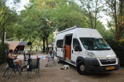 Een complete reisdag gehad dit keer. Waarvan 575 kilometer over de Italiaanse snelweg ongeveer vanaf Bari en dan richting het noorden. In het zuiden was het vrijwel uitgestorven op de snelweg. Naarmate we noordelijker kwamen, werd het wat drukker, maar echt druk was het nooit. We zijn aanbeland op camping Marecchia in Ponto Messi en het is hier een waar paradijsje: prima sanitair met toiletbrillen, toiletpapier en zeep. Een plek volledig in de schaduw, een groot zwembad met ligweide, drie duikplanken, parasols en gras met schaduw om te relaxen, autovrij enz. Wat een weelde…. Enige is dat we wel morgen naar een ander plek moeten verkassen, want de reservering was niet helemaal goed gelopen. Ook al is de camping morgen volgeboekt, dan heeft de eigenaar toch een alternatieve plaats voor ons met lange stroomkabel zodat we ook stroom hebben. Dat kon wel, want het was toch maar voor 1 nachtje. Gelukkig maar, want we zouden er niet zo happig op zijn om na zo’n lange rit nog ergens anders een camping te moeten gaan zoeken.