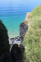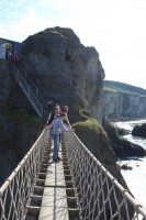 We proberen bijtijds te vertrekken vanuit de Walled Garden camping, want we hebben een ferry te halen naar Noord-Ierland. Het bijtijds vertrekken lukt half half, maar we zijn toch ruim op tijd in de haven van Cairnryan, waar om 11.30 uur de boot vertrekt naar Belfast. We hebben een goede overtocht en het is lekker weer. Als we om 14.00 uur van boord rijden moeten we even de juiste weg uit Belfast vinden, maar daarna rijden we een prachtige route langs de Noord-Ierse kust om ruim 2 uur later bij de touwbrug Carrack-a-Rede uit te komen. Daar is het zo druk, dat de eerstvolgende gelegenheid om over de touwbrug te gaan tussen 17.30 en 18.30 uur is. Om de tijd te doden bakken we eieren en eten wat boterhammen. In colonnes gaan we de touwbrug over. De uitzichten naar de brug toe en op het eilandje erachter zijn prachtig. Het is alleen jammer dat je niet helemaal je eigen gang kunt gaan en er altijd met veel mensen tegelijk bent,