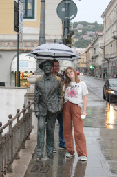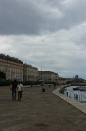 Er is op veel plaatsen veel regen voorspeld vandaag. Geen weer dus om buiten een en ander te gaan ondernemen. We hebben dan ook besluiten om van de regendag een deels reisdag te maken en gaan verder richting de Sloveense grens. We hebben gisteravond een reserveringsverzoek ingediend bij een camping in de buurt van Triëst. Het is een kleine camping en je moet dus reserveren. Als we vertrekken, hebben we nog geen reactie ontvangen. We besluiten er toch naar toe te rijden. Onderweg komen we een jonge knul tegen die een eenzijdig ongeluk met zijn auto heeft gehad. Hij is aan de andere kant van de weg tegen een muur aan gereden en de brokstukken liggen overal, ook de airbags zijn geactiveerd en de knul oogt zenuwachtig en onrustig. We vragen of hij hulp nodig heeft. Hij wil graag een telefoon gebruiken, want zijn telefoon reageert niet en hij probeert met onze telefoon zijn moeder te bellen. Die neemt niet op. Zouden we zelf ook niet doen als er zomaar iemand belt met een buitenlands nummer. Zijn opa neemt wel op en komt naar hem toe. Omdat de auto ook niet meer start, helpt Ruud hem de auto van de weg af te halen. Daarna bedankt hij voor de hulp en we gaan weer verder. Tussen de middag hebben we nog steeds niets gehoord, dus gaan wel bij de camping kijken. De laatste paar honderd meter naar de camping is een steile helling op, 1 auto breed. Oeps… en als we boven zijn, heeft de camping geen plek. We krijgen wel een alternatief voorgeschoteld op 20 minuten rijden (van waar we vandaan kwamen). Daar gaan we naar toe. Als we bij de volgende camping zijn, is het een kampeerfabriek met honderden kampeerplekken en stacaravans. Er is plek, dus we mogen te voet een leeg veld uitzoeken en ons dan aanmelden. Als we daar rondlopen vinden we het totaal geen camping voor ons, waar we ook nog eens bijna de hoofdprijs voor moeten betalen. Ook al is het maar voor 1 nacht, we proberen eerst een andere camping door ze op te bellen en te vragen of er plek is. Als er geen plek is, kunnen we altijd nog op die kampeerfabriek blijven. Maar we hebben beet: we bellen een camping die een plek voor ons heeft vannacht en gaan daarnaar toe. Blijkt nog weer iets verder te zijn dan de camping waar we als eerste waren, dus we rijden hetzelfde stuk weg 3 keer…. De camping ligt echt 100 meter naast de Sloveense grens. Het is een echt Italiaanse camping met veel mozaïekwerk bij de sanitair gebouwen, ook wat aftands uitziend allemaal, maar zoveel beter dan die kampeerfabriek. Ook hier prima toiletten (zelfs met papier en zeep) en het internet is prima. We settelen ons op ons plekkie, lunchen en vertrekken met de 2CV naar Triëst. Fijn dat we zo’n klein autootje hebben, want het is smal in de straten en ook in de parkeergarage. Triëst is een mooie stad, aan de Adriatische zee en heeft ook veel mooie gebouwen. We eten wat in de stad en lopen via een oud Romeins amfitheater terug naar de garage. Als we de garage uitrijden, moeten we een weg van 2 kilometer volgen de stad uit, maar deze weg gaat alleen maar steil omhoog. Uiteindelijk moet Ruud terugschakelen naar de eerste versnelling om de weg omhoog te kunnen vervolgen en slipt de auto door het vochtige wegdek, maar rijdt (gelukkig) toch weg. Dan maar in de eerste versnelling langzaam verder rijden tot we bijna boven zijn. 10 minuten later zijn we weer veilig op de camping. Vanwege de regen hebben we geen zin om alles uit te pakken en onder de luifel buiten te gaan zitten, dus we spelen Triominos bij de bar van de camping onder grote parasols. Ondanks de gestage regen van vandaag is het toch ook op meerdere momenten van de dag droog geweest. Als het goed is, is het de komende dagen droger weer.