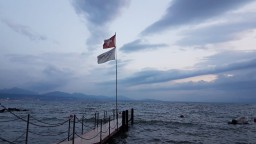 Het dreigde te gaan regenen in de avond. Tussen de middag hebben we een spat regen gehad, maar daarna scheen de zon weer en was het drukkend warm. In de avond en nacht bleef het bij veel wind, maar regen hebben we niet gezien en bij de buren geen lawaai dit keer. Heerlijk geslapen dus.