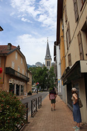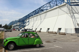 Onze camping ligt in de buurt van Albertville. Het is zo’n 40 minuten rijden hiervandaan. Een mooie afstand voor een dagtocht met de 2CV. Het is 33 jaar geleden dat Liske in Albertville is geweest voor de Olympische Winterspelen, dus de drang om er naar zoveel jaar nog eens te gaan kijken, was flink aanwezig en vandaag dus mogelijk. We gaan als eerste naar de plek waar tijdens de Spelen het ijsstadion was: er zijn een Olympische hal, een Olympisch stadion en een Olympisch park. We bezoeken de Olympische hal, waar je kunt schaatsen, (Davis cup) tennissen en er is een informatiecentrum over de regio van de Olympische Spelen: de terreinen, wat je allemaal kunt doen en zien in de bergen en uiteraard kun je terugblikken op het grootste sportevenement wat hier heeft plaatsgevonden. Behalve het bekijken van o.a. de fakkel, de medailles, de stadions toen en nu, konden we ook met een VR-bril als paraglider zweven boven de berglandschappen en hebben we een rit gemaakt over de Olympische bobbaan in 1 minuut en 18 honderdste van een seconde. Er was ook een expositie over de Tour de France, omdat op vrijdag 25 juli Albertville de startplaats is van de etappe. De voorbereidingen daarvoor waren al in volle gang. Ook hier werden we vlak voor 12 uur de deur gewezen, omdat ze 1,5 uur middagpauze hadden. We zijn dus verder gegaan naar het centrum, hebben daar onze broodjes opgegeten op een bankje in de schaduw en hebben wat winkeltjes bezocht (die wel tussen de middag open waren). Tot slot bij een winkelmall nog een boekwinkel en een hele grote speelgoedwinkel bezocht, waar we een puzzel en een HY-bus hebben gekocht. De boekwinkel was wel enorm groot, maar het assortiment Engelse boeken zeer miniem en wat er dan staat is van een beperkt genre, dus interessante boeken zijn nog niet gevonden.