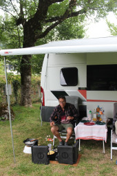 Met een tussenstop om het dak dicht te maken vanwege beginnende regen en een tussenstop voor de broodnodige boodschappen komen we weer bij de camping aan. De zwemspullen die buiten hingen te drogen, waren gelukkig nog niet erg nat geworden en hebben we snel binnengehaald. Helaas bleef het wat regenen, dus het eten koken en buiten zitten vond plaats onder de luifel.