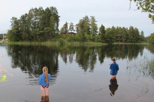 Na het eten vertrekken we naar het meer om te vissen en te zwemmen. Het duurt even, maar dan lukt het toch iedereen om 1 of meerdere vissen uit het water te hengelen. Met de eindstand op 10 voorntjes, keren we om half elf 's avonds terug naar de camper.